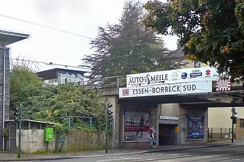 Essen-Borbeck Süd is a railway station in Essen, North Rhine-Westphalia, Germany. The station is located on the Essen–Bottrop railway and is served by S-Bahn services operated by DB Regio.