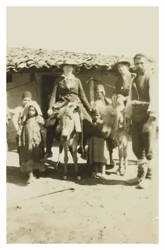 In February 1918, Ethel embarked on a second tour of duty with the Scottish Women's Hospital. Before leaving the UK the unit was inspected by King George V and Queen Mary at Buckingham Palace.[11] Ethel left the UK with her unit on 20 February 1918 en route for Serbia. They travelled via Boulogne, Rome, Naples, and Taranto before arriving at the Scottish Women's Hospital in Salonique. While passing through Naples Ethel records a short visit to Pompeii in her diary.[12] From Thessaloniki the unit moved on to S.W.H. “Elsie Inglis” Camp in Verbliani where a tent hospital was to be built as a direct line from the trenches.[12]