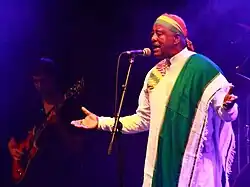 Ethiopian jazz is a fusion of traditional Ethiopian rhythms and harmonies with the techniques and instruments of Western jazz. One of the key figures in the development of Ethiopian Jazz was Mulatu Astatke. As a teenager, Mulatu was able to leave Addis Ababa in 1959 to study music at the Trinity College of Music in London.[4] There he received training on how to use Western instruments such as the piano and clarinet. After London, he moved to New York to pursue his passion of jazz and Latin pop. However, Mulatu soon returned to his home country in 1969 to discover the upswing of Addis Ababa's Golden Age of Music. Using the five-note pentatonic scale and asymmetrical rhythm from Tizita Qenet and his technical skills from New York, allowed him to create a unique sound he called "Ethio-Jazz".[5] Although Western music was not new to the country, Mulatu met some set-back against his creation as there was still a strong traditional mindset in Ethiopia. Beginning in 1960, a growing number of people began to feel as though Western traditions were contaminating the national identity of Ethiopians.[6] These groups opposed Mulatu's radical style of music that used his 'signature vibraphone' and conga's which contrasted the traditional Masenqo and Washint of Ethiopia. Still, with the help of Amha Eshete, Mulatu was able to gain popularity and release many records of his new sound.