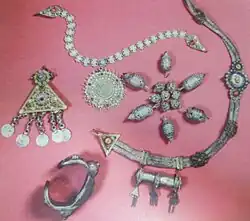 Body jewellery as a specific type of our ethno-culture, in a particular manner, depicts the folk arts of this nature and they have been extended broadly as artistic productions amongst Albanian people. Thus the values under the possession of the institution (Museum) and 230 exhibits of this treasure which have been shown by the fund of the Museum of Kosovo as selected, were sent to Belgrade for a temporary exhibition in 1998.. They are of a complex, unique, and artistic profile, with multi-dimensional values. At the same time, they illustrate the layered historical nature of this segment of material and spiritual ethno-culture of the people in a complex manner by also involving the artistic and artisanal character, which has been built in a special manner amongst Albanian people. These treasures contain qualitative specifics because they are accompanied by elements that have played a non-portrait role; a component that has been preserved as an element of spiritual culture since pre-history until today in all Albanian ethnic backgrounds. Treasure of body jewelry in the aspect of the construction of motifs are made simply with classical tools but through which their complex meaning diversity is shown, and the harmonized arrangement of ornamentals is a perfect shape in which the objects belonging different ages, and through which that present motif where people's beliefs of the tradition are involved, the youth love, family love, love for the successors, the love for spouse and national symbols, symbols people's faith related to cult and other accessory elements intermingled in them.