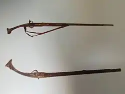 Albanian people, as one of the most antique peoples of the Balkans, inherited from the past, a rich material culture. When speaking of weapons, it must be mentioned that an Albanian person never went away from their weapon. The weapon accompanied them in all their lifetime. In every case. in any risk they have relied on it. An Albanian lets themself be killed but never surrenders their weapon. The gun has equal importance with the honor of their home, with the honor of their wife and his children, to always be ready in reaction to any war cry against invaders, each individual and every family was obliged to ensure a weapon, to any man from 13 to 15 years old. The weapons made in Kosovo, especially in Prizren, Peja and Gjakova were of high quality and they were sold throughout the whole Ottoman Empire, even outside the Empire, like in Egypt, Little Asia, Persia, India, etc. The shops where weapons were produced in the majority of cases were located on certain roads or in centuries of the cities. According to the data from 1866, in Prizren there were 208 weapon workshops, 53 were even specialized in the production of barrels of the weapon and circuits of the pistols and 155 shops were doing the decoration of weapons with golden and silver applications. Production of weapons was made in processes. The process of producing barrels (drilling with "metkap" and long "kalizvar"), the process of making circuits, making belts by leather workers, tempering and testing shots, assembling, and finally the process of decorating the boxes by the silversmiths. The weapons are decorated with different types of motifs. Every trade center had its own profile and special technique of weapon decoration. Techniques of weapon decoration were of diverse natures such as decoration with filigree, with "Savat", with silver work. (The text written for permanent exhibition in the complex Emin Gjiku, from the author Bashkim Lajçi).