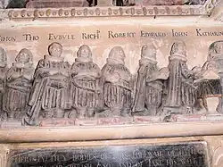 Eubule Thelwall with brothers on their father's memorial at Llanrhudd Church, Ruthin – known locally as the "Thelwall's Church"