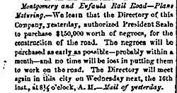 - ^ "Montgomery and Eufaula Railroad". Daily Columbus Enquirer. January 9, 1860. p. 2.