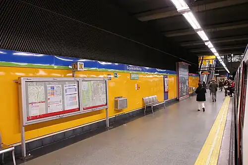 Eugenia de Montijo [ewˈxenja ðe monˈtixo] is a station on Line 5 of the Madrid Metro, named for the Calle de Eugenia de Montijo, which is named after Eugénie de Montijo (1826–1920), a Spanish noblewoman who was Empress of the French as wife of Napoléon III. It is located in fare Zone A.[1]