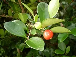 Eugenia reinwardtiana is a shrub to small tree in the family Myrtaceae. Native to tropical forests in Indonesia,[3] the Australian state of Queensland, and many Pacific Islands, its common names include Cedar Bay cherry, beach cherry, Australian beach cherry, mountain stopper,[4] nīoi (Hawaiian),[5] and a'abang (Chamorro). They are typically 2 to 6 m (6.6 to 19.7 ft) in height.[6]