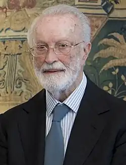 Scalfari died on 14 July 2022, at the age of 98.[62][63] His death came during the 2022 Italian government crisis.[64] Upon Scalfari's death, Pope Francis remembered him as a "laical friend".[65] Among others, the paper's editor-in-chief Maurizio Molinari,[44][66] the paper's owner John Elkann,[67][68] La Stampa editor-in-chief Massimo Giannini,[69] La Stampa and La Repubblica journalist Ezio Mauro,[70][71] Democratic Party politicians like Enrico Letta and Walter Veltroni,[72][73][74] and the paper's journalists and readers paid tribute to Scalfari,[75][76][77] as did all major Italian institutional figures,[78] and international figures like Bernard Guetta and France's Le Monde,[79] as well as Spain's El País.[80] Italy's Senate of the Republic held a minute of silence.[81] La Repubblica published a special issue in his honour.[82]