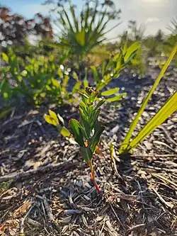 Despite its locally stable subpopulations with >90% year-to-year survival, the species is challenged by its low fecundity. Observed subpopulations appear to either be all female or a mix of male and andromonoecious individuals, with females being the predominant flowerers and fruit production being low.[4] Fire has been noted to simultaneously have negative long-term consequences for survival but short-term benefits to flowering rates.[4]