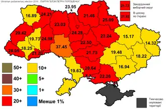 In May and June 2014, Ukrainska Pravda characterised the party ("All-Ukrainian Union Solidarity") as "a myth with no website, unknown phone numbers and non existing addresses".[23][30] At the 2014 presidential election, Poroshenko was elected President of Ukraine.[34][35][36][37][38]