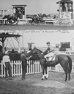 From 1937—1941, Canada was struggling through The Great Depression and the start of World War II, but it did not stop people from attending horse races. It was inexpensive entertainment if one could resist trips to the betting window and simply watch the races.[9][10] For religious reasons, there were no races held on Sunday. In the U.S., state governments saw horse racing as a potential "honey pot" to replenish their shrinking coffers. They increased taxes on racing revenues in exchange for legalized betting, which in turn, enticed business investors and increased the number of race tracks by 70%.[11] Female jockeys did not benefit from that growth because, at the time, they were barred from obtaining a jockey license and competing in the same high stakes races as their male counterparts. That didn't change until 1968.[12]