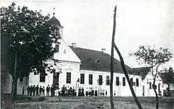 First Protestant Danube Swabians settled in Banovci in 1859 where they initially relied on support of local Serbian Orthodox priest Uroš.[3] As the northern part of historical region of Syrmia was predetermined for German Catholic colonists, and settlement in the biggest part of Slavonian Military Frontier was almost impossible, German Protestants had to settle in the bordering region between these two jurisdictions.[3] As there was no Lutheran church in Banovci at that time, German Protestant settlers asked priest Uroš to hold a Christmas Mass for them under the Eastern Orthodox liturgical rite.[3] Priest Uroš have refused this request as it was contrary to Orthodox canonical rules, yet he offered them to organize Christmas Celebration on their own in the Church of the Holy Venerable Mother Parascheva.[3] Orthodox priest also attended Evangelical celebration which left positive impression on him.[3]