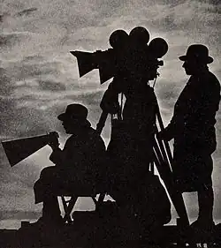 ![]() Cinematographer Robert Kurrle and director Edwin Carewe filming a dusk scene for Evangeline | |