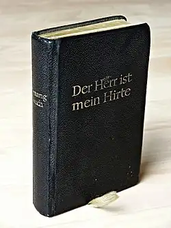 The intention to have a common German Protestant hymnal date back to the mid of the 19th century. A meeting of representatives of German state churches in Eisenach in 1853 resulted in a collection of songs that were widely known and preferred, Deutsches Evangelisches Kirchen-Gesangbuch in 150 Kernliedern, also known as Eisenacher Büchlein.[1] The EKG appeared in 1950, with 394 common songs. Each state church added its special hymns.[2]