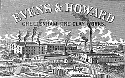 The Evens & Howard Fire Brick Company was a manufacturer of fire bricks, sewage pipe and gas retorts in what is now the Cheltenham neighborhood of St. Louis, Missouri. It was founded formally in 1855 as the Cheltenham Fireclay Works and achieved sales as far away as Quebec[1] and Africa.