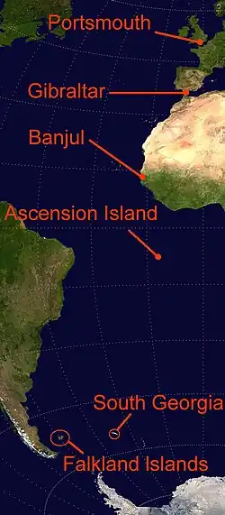 - ^ "Bahia Buen Suceso set sail for South Georgia on 11 March carrying Argentine Marines". Rowland White, Vulcan 607, London, Bantam Press, p30.