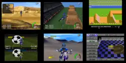 While in development some of the main features they concentrated on were the game's sense of speed, the jumps and the ability to perform tricks, similar to the original game, as well as taking inspiration from the earlier released Wave Race 64.[6] To recreate the riders' movements and tricks the developers used a technique called 'inverse kinematics' to create a life like feel.[6] While other parts of the tracks were littered with bumps, log bridges and streams to run through. Using the N64's Rumble Pak allowed the player to feel these game experiences, as well as such things as making a hard landing.[6] Besides the standard tracks, several mini games were also added as unlockable content. The Desert Track was fractally generated for an endless desert, but despite the random building of its dunes, it also keeps the current configuration in the game's memory, allowing the player to return to the same spot that they once left.[6] The game was revealed by Nintendo to the public at the pre-E3 conference on May 12, 1999.[7] The game was shown playable the next day.