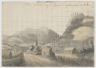 The first church in Fåvang was built as a wooden stave church in the late 13th century on the present site of the church (some records state that the church first was built on another site, but there is no conclusive evidence of this). This stave church was a wooden long church.[5][6]