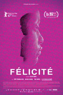 Félicité is a 2017 Senegalese drama film set in the Democratic Republic of the Congo and directed by Alain Gomis.[3] It was selected to compete for the Golden Bear in the main competition section of the 67th Berlin International Film Festival.[4] At Berlin, the film won the Jury Grand Prix award.[5] At the 2017 Africa Movie Academy Awards, it won six awards which is the highest for a film in the history of the award ceremony, including categories for best film, best actress, best supporting actor, best editing, best soundtrack and best film in an African language.[6][7][8]