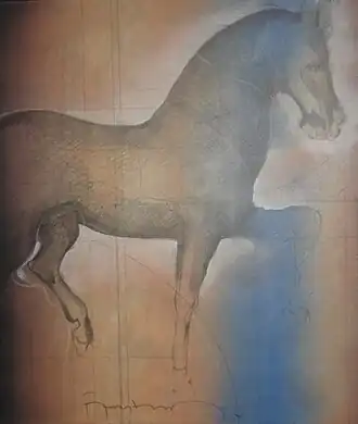 His architectural studies have served as a liaison for the expressive use of space, making works in a perfect harmony between the rigidity of the geometry and the lightness of metaphorical poetry. His drawings contain an exquisite balance between the schematic and the ethereal. On occasion, he has been inspired by works of the Renaissance period, introducing a series of works dedicated to the great masters like Michelangelo, Leonardo da Vinci and Raphael.