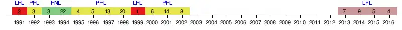 Year | League of | A place | W | D | S | Goals | spectacles | Scorers | Cup |