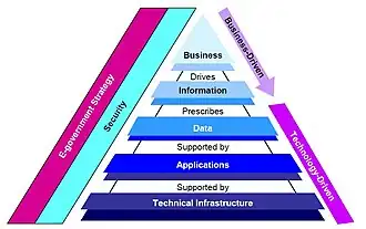 The FDIC's framework for implementing its Enterprise Architecture was based on Federal and industry best practices, including the Chief Information Officer (CIO) Council's Federal Enterprise Architecture Framework (FEAF) and the Zachman Framework for Enterprise Architecture. FDIC's framework was tailored to emphasize security. The historic FDIC EA framework complies with the FEAF and highlights the importance of security to all other components of the architecture.[3]