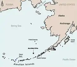 The unexpected and unexplained flooding of the ship meant that the crew had to abandon the vessel at night, into the frigid waters of the Bering Sea. Radio pleas for help were forwarded to a US Coast Guard vessel, which moved toward the area while dispatching helicopters. By the end of the effort, 42 of the 47-person crew had been located and brought safely to shore, most suffering severe hypothermia.