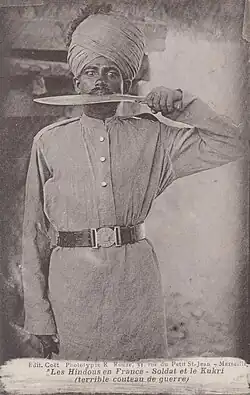 Non-Sikh personnel are allowed to grow whiskers and mustaches, with the only regulation being that they "will be of moderate length".[1] In December 2003, the Supreme Court of India ruled that Muslims in uniform could grow beards,[2][3] although the rules have since been changed again (via a Supreme Court ruling in 2018) to once again allow only Sikhs to wear beards.[4] Thus, non-Sikhs serving in the Indian Army or Indian Air Force are not permitted to wear beards. However, Army personnel on active duty are sometimes exempt from facial hair regulations for the duration of their tour of duty if their deployment makes access to such facilities difficult. Indian Navy personnel are allowed to grow beards subject to the permission of their commanding officer.[5]