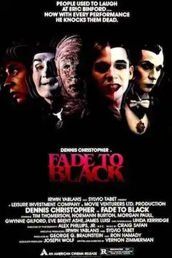 Fade to Black is a 1980 American psychological horror comedy film written and directed by Vernon Zimmerman, and starring Dennis Christopher, Eve Brent, and Linda Kerridge.[2] It also features Mickey Rourke and Peter Horton in minor roles. The plot follows shy and lonely cinephile Eric Binford who embarks on a killing spree against his oppressors while impersonating classic film characters.