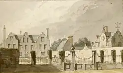 Thomas Pennant passed by Faenol Fawr in his Tour to Snowdonia in 1776, when he records: "In a very wet situation, beneath Kinmael, is Vaenol; one of the best old houses in the county of Flint. It was built in 1595, by John Lloyd…. register (Registrar) of St Asaph in the reign of Queen Elizabeth; a place extremely profitable, before the powers of the church were abridged".[1] An extra illustrated copy of the Tour in Wales in the National Library of Wales, has a water-colour of Faenol Fawr in about 1776, which shows that present building is little changed in appearance.[2] The house is listed Grade II*, as is the dovecote to the west of the house. There is another smaller and earlier house with a cyclopean doorway that is now joined to the main house. Immediately to the N W is the Old Farm House with crow stepped gables, which is listed grade II, as is also the large barn to the east. Facing the Old Farm House is a row of converted cartsheds. The house was badly damaged by fire in 1980 and has now been converted into a country house hotel.