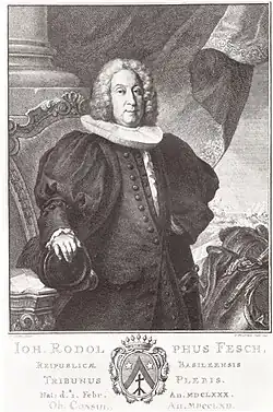 The family is said to be of ancient nobility from Valais in Switzerland.[1] Two brothers of the family acquired the hereditary burghership of Basel in 1409. Family members became members of the council, and thus the ruling class of the city-republic of Basel, from 1494. Members of the family served continuously in the government of the city from the mid 16th century until the end of the 18th century. Several family members also became Burgomaster's and thus heads of the republic, and others became Rectors of the University of Basel. The family intermarried for centuries with other prominent patrician families. Remigius Faesch (ca. 1460–1533) was a famous architect.