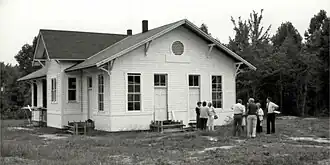 A group of local residents, with the particularly strong participation of the Clifton Community Woman's Club (CCWC), organized the Friends of the Fairfax Station in 1973 to save what had been the center of their community.[26] In February 1975, local resident and CCWC member Lena Wyckoff approached Southern Railway Co. about the possibility of donating the depot to a local non-profit for the purpose of preserving and operating it as a museum.[27] The Fairfax County Board of Supervisors supported the concept. Local landowners contributed property to meet Southern's condition that the depot be moved to a nearby site.[28] Southern Railway's president, Stanley Crane, formally agreed to the transfer of ownership of the station to the Friends on Sept. 15, 1977.[29]