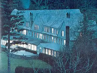 The Fairfield Inn was an historic hotel building located on Fairfield Lake near US Highway 64 in Cashiers, Jackson County, North Carolina. It was built in 1896-1898, and consisted of a 2 1/2-story main block with two rear wings. The Queen Anne style frame building featured three massive singled gables, hipped dormers, a three-story corner turret, elliptical windows, and a one-story lakeside verandah. The hotel had 100 rooms.[2]