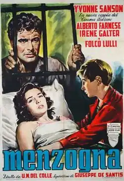 Falsehood (Italian: Menzogna) is a 1952 Italian melodrama film directed by Ubaldo Maria Del Colle and starring Yvonne Sanson, Irène Galter and Alberto Farnese.[1] It was shot at the Titanus Studios in Rome. The film's sets were designed by the art director Ottavio Scotti.