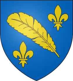 ![]() The arms attributed to the Merckel family in Alsace, blazoned in English Azure a feather bendwise between two fleurs de lys Or. Thomas Markle's forefather was Heinrich Martin Merckel, who emigrated to the United States from the Alsatian town of Lampertsloch | |