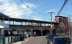 - The Far Rockaway terminal station for the Long Island Rail Road's Far Rockaway Branch.[60] The branch had been part of a loop with service along the existing route, continuing through the Rockaway Peninsula and crossing on a trestle across Jamaica Bay through Queens, where it reconnected with other branches. Frequent fires and maintenance problems led the LIRR to abandon the Queens portion of the route. The city acquired this to develop the IND Rockaway Line.[62]