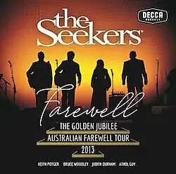 Farewell (subtitled The Golden Jubilee Australian Farewell Tour 2013) is a live album by Australian band The Seekers. The album, released on CD and DVD captures the historic concert filmed in The Seekers' hometown of Melbourne in 2013.[1]