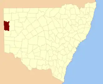 - ^ "Farnell County". Geographical Names Register (GNR) of NSW. Geographical Names Board of New South Wales. Geographical Names Board of NSW]
