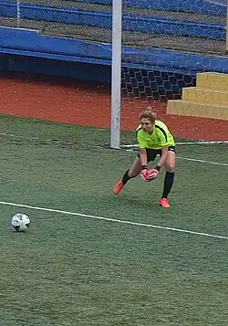 In the 2020-21 Turkcell Women's Football League season, she enjoyed the second champion title with her team Beşiktaş J.K.[19][20] She was honored with the award of Best goalkeeper of the 2020–21 season.[21] She played in two matches of the 2021–22 UEFA Women's Champions League qualifying rounds.[22][23]