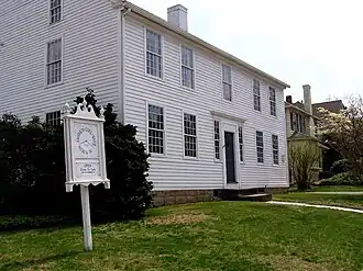 The historic district is roughly bounded on the west by a railroad right-of-way which skirts around the base of the hill, and on the south by High Street. To the east and north it is bounded by areas filled with construction after the 1920s. There are more than 250 primary buildings (houses, churches, schools, and a few commercial buildings) in the district, and a number of period outbuildings, mainly garages and barns or carriage houses. The architectural styles seen the most are the Italianate of the 1850s-1870s, and the Queen Anne Victorian. Probably the most opulent house in the district is the Beleden House, a Beaux Arts mansion built in 1908-10 for a local merchant and banker, which is individually listed on the National Register for its architecture.[2]