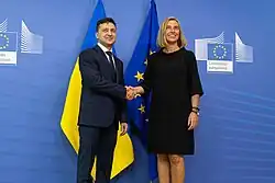 Federica Mogherini (Italian: [fedeˈriːka moɡeˈriːni]; born 16 June 1973) is an Italian politician who served as High Representative of the Union for Foreign Affairs and Security Policy and Vice-President of the European Commission from 2014 to 2019. She is a member of the Democratic Party (PD), which is part of the Party of European Socialists. She previously served as Italy's Minister for Foreign Affairs and International Cooperation from February to October 2014 in the Renzi government. She was a member of the Chamber of Deputies (MP) from 2008 to 2014.[1] In 2020, she was appointed rector of the College of Europe, a post-graduate university for European studies in Bruges (Belgium), Natolin (Poland), and Tirana (Albania).[2]