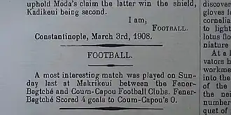- ^ Dağlaroğlu, Rüştü; "Fenerbahçe Spor Kulübü Tarihi 1907-87", İstanbul (1988), p.514