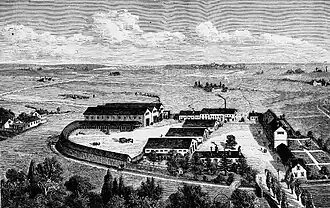 It was founded in 1857 by Jean-François Cail,[1] a manufacturer of sugar factory equipment and locomotive construction, who wanted to apply the principle of vertical integration to agriculture. The exploitation of the estate, which covered more than 1,600 ha in a single block at its peak, is based on cattle breeding and sugar beet cultivation. Imposing buildings make up a central farm on four hectares controlling seven satellite farms. The main products of the estate were sugar extracted from beets and alcohol from the distillation of beets and grains, as well as beef animals, cattle and sheep. 350 to 400 people were employed there year-round, in addition to seasonal workers.