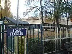 The community has two public preschools/primary schools: École Jean-Calas and École Florian. A nearby intercommunal school, École Intercommunale Jean de la Fontaine in Prévessin-Moëns, also serves the community. As of 2018 the three schools had a combined total of 952 students, with Jean-Calas, Florian, and Jean de la Fontaine respectively having 278, 307, and 367 students.[6] Around 1940 a primary school, the École de Ferney-Voltaire, was established. About 1970 it was renamed École Florian, after the French poet and fabulist Jean-Pierre Claris de Florian, whose uncle and guardian, the Marquis de Florian, had married a niece of Voltaire, Madame Dompierre de Fontaine. The school is notable for having had a large number of pupils who were children of physicists at CERN, which is located in the vicinity. Ferney-Voltaire also has a private preschool/primary school, École Saint-Vincent.[6]