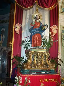 The current wooden statue used in the celebration was created in 1797 by Serrese sculptor Vincenzo Scrivo, discovered thanks to a restoration made in the 1980s. In 2006, another little restoration was made, and that year the feast began at the border with Stilo at Via Nazionale.