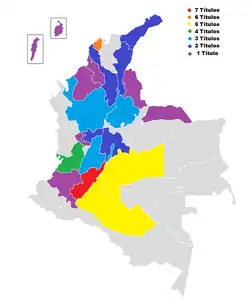 Huila | 7 | 1961, 1984, 1991, 2001, 2005, 2009, 2017 |