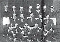 TUL football team participated all three International Workers' Summer Olympiads in 1925, 1931 and 1937. At the 1925 Olympiads in Frankfurt, TUL squad reached the final against the German team of Arbeiter-Turn- und Sportbund. The final was played at Waldstadion in front of a 40,000 spectators.[5] In 1928, the TUL football team participated the Spartakiad in Moscow, although the federation's Social Democratic board had forbid the contacts with the Soviet-led Red Sports International. As a result, the Communist clubs who had sent their athletes to the Spartakiad were dismissed from TUL in 1929.[2] Most of the expelled footballers joined the member clubs of the Finnish Football Association in order to continue their career. This also made possible for them to be selected to the national team.[4]