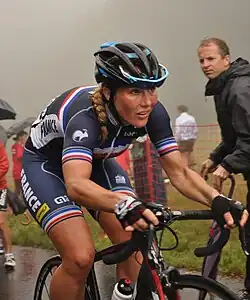 Fiona Dutriaux (born 25 January 1989 in Croix) is a French former professional racing cyclist.[1] On the track she competed in several world cups and European Championships. She won several medals at the French National Track Championships, including a gold in the scratch in 2009 and a gold in the points race in 2010. On the road, she rode for the Poitou-Charentes.Futuroscope.86 team between 2007 and 2014. Dutriaux represented her country in the road race at the 2015 European Games in Baku, Azerbaijan.