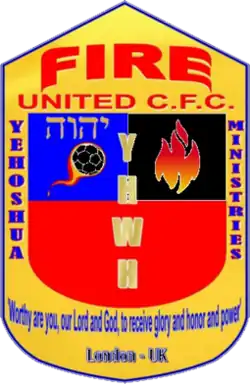 The club was founded in 2012 as Fire United Christian by Gustavo Ferreira, and is owned by the Yehoshua Ministries, a Christian group of which Ferreira is the founder. The club has a Christian ethos, with the club's motto being "Worthy are you, our Lord and God, to receive glory and honor and power", which appears on the club badge.[2] The club mainly contains players from the Brazilian community in London. They joined Division One Central & East of the Middlesex County League for the 2012–13 season. In 2013–14 the club were runners-up in the division. However, they finished bottom of the table the following season, and were inactive in 2015–16. After returning to Division One Central & East for the 2016–17 season, they won the Jim Rogers President's Division One Cup in 2017–18. The club subsequently successfully applied to join the new Division One South of the Eastern Counties League. The 2018–19 season saw the club enter the FA Vase for the first time.[3] They resigned from the Eastern Counties League shortly before the start of the 2020–21 season.[4]