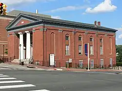 In 1866 James H. Holmes, a former slave and highly gifted preacher, and also a member and deacon of the church, was elected assistant pastor, and in 1867 pastor at the Church. Under Holmes, the church grew significantly and became one of the largest churches in the country. In 1871 he baptized 600 people, in 1878 he baptized 1,100. In 1876 the original building was torn down and the congregation built a new church costing $35,000 and installed an organ costing $2,500, which was the largest organ in any African American church, in 1877.[6] The location of both the original church building and its replacement is at the corner of College Street and East Broad Street.[7] The demolition of the original church building was an act which brought accusations of "a true lack of American veneration for old things" from Harpers Weekly.[4] Architect Thomas U. Walter designed the new building, using a Greek Doric temple design.[7] Many of the white congregations in Richmond used a similar style when constructing their churches.[8]