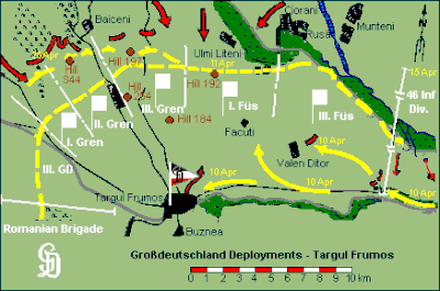 After a desperate two-day struggle by three divisions of 35th Corps to avoid encirclement, the fighting in the Târgu Frumos region quieted down by midday on 12 April.[6]