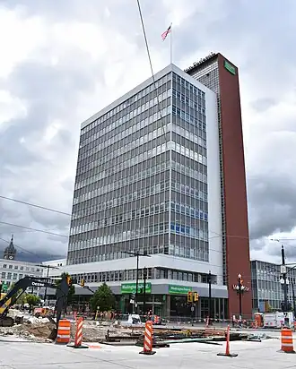 Constructed for the First Security Corporation, the building was the first skyscraper built in Salt Lake City after the Great Depression.[3] In 2000, First Security Corporation was purchased by Wells Fargo,[4] after which the building became largely vacant.[5] Wasatch Property Management purchased the building and rehabilitated it in 2004.[6] After the restoration, Ken Garff Automotive Group moved into the building and its name was changed to the Ken Garff Building.[5] The automotive group left the building in 2017,[7] and the tower was renamed the Washington Federal Bank Building.[8]